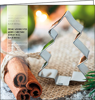Sie sind hier: Startseite » Weihnachtskarten Weihnachtskarten "Feines Zimtgebäck" Weihnachtskarten Weihnachtskarten "Feines Zimtgebäck" Format150 x 150 mmAusführungPapier: weiss, mattgestrichenVerfügbarkeit:Solange Vorrat Aktion war erfolgreich Das hat leider nicht geklappt. Warenkorb anzeigen Zur Kasse gehen Weiter einkaufen Einlageblatt: ohne Einlageblatt mit Einlageblatt weiss Couvert: ohne Couvert mit Standard-Couvert weiss Anzahl: Stk In den Warenkorb Weihnachtskarten "Mehr Weihnachtsglück" Weihnachtskarten "Grüner Stern"