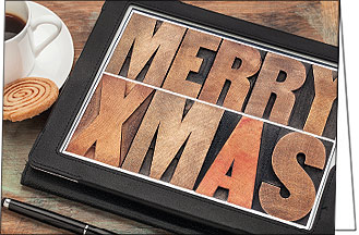 Weihnachtskarte "Merry Christmas Holzschnitzerei"